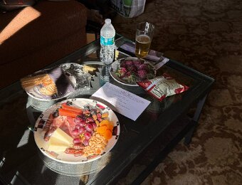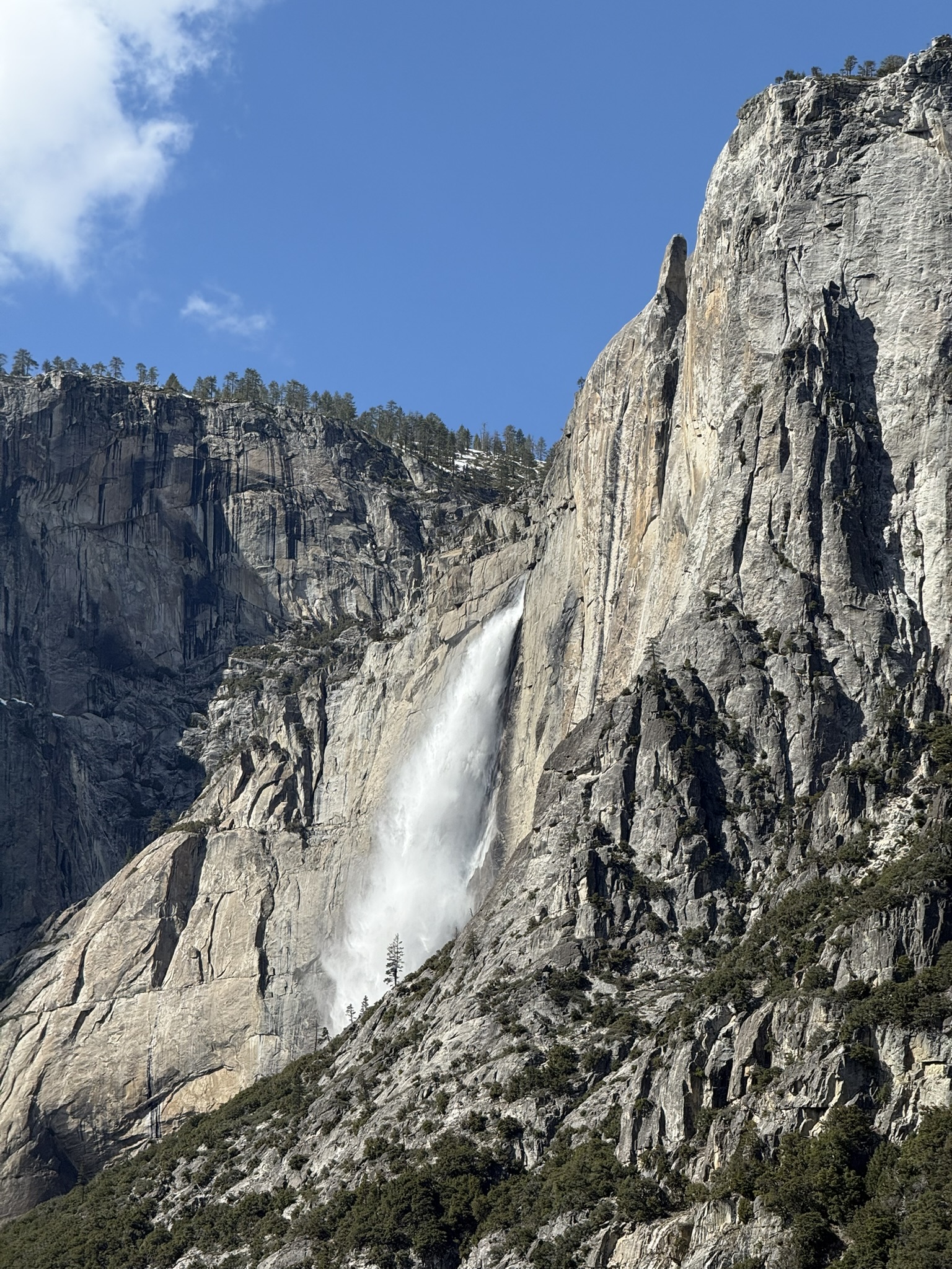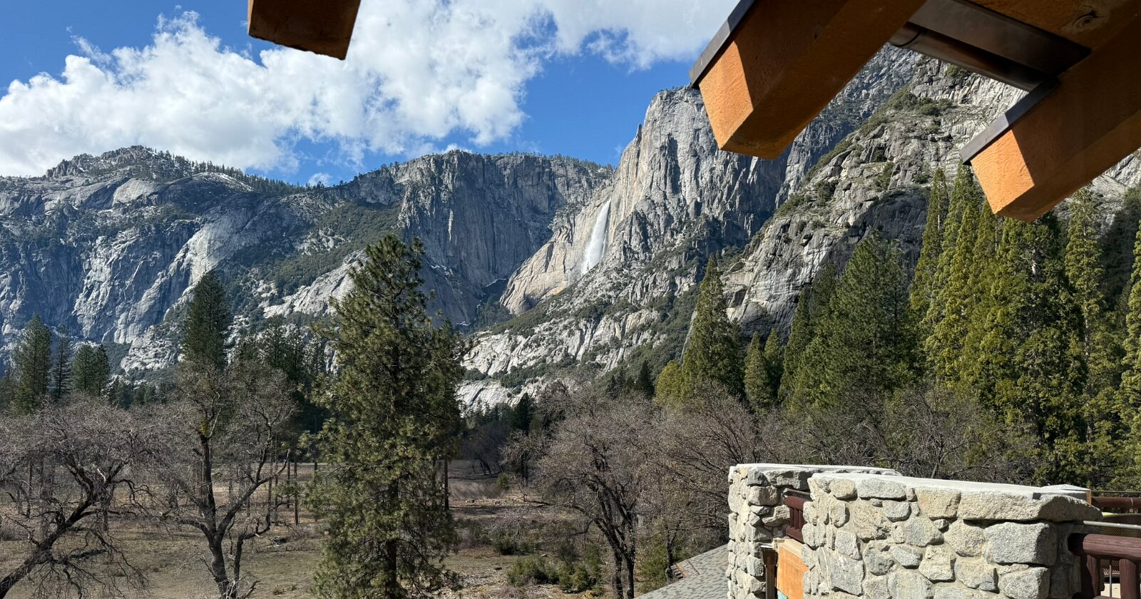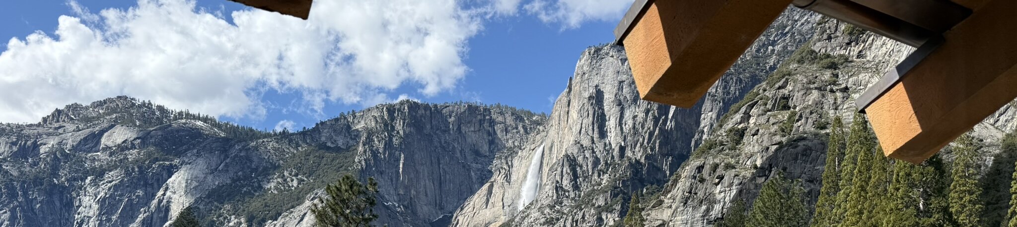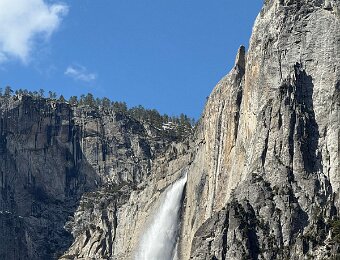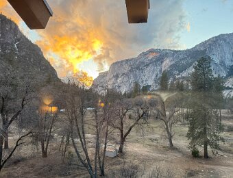 View from our room Upper Yosemite Falls Upper Yosemite Falls The usually dry creek feeding the Merced River near the village store Steller's Jay near Ahwahnee meadow Sunset Our welcome gift New carpeting for the lobby