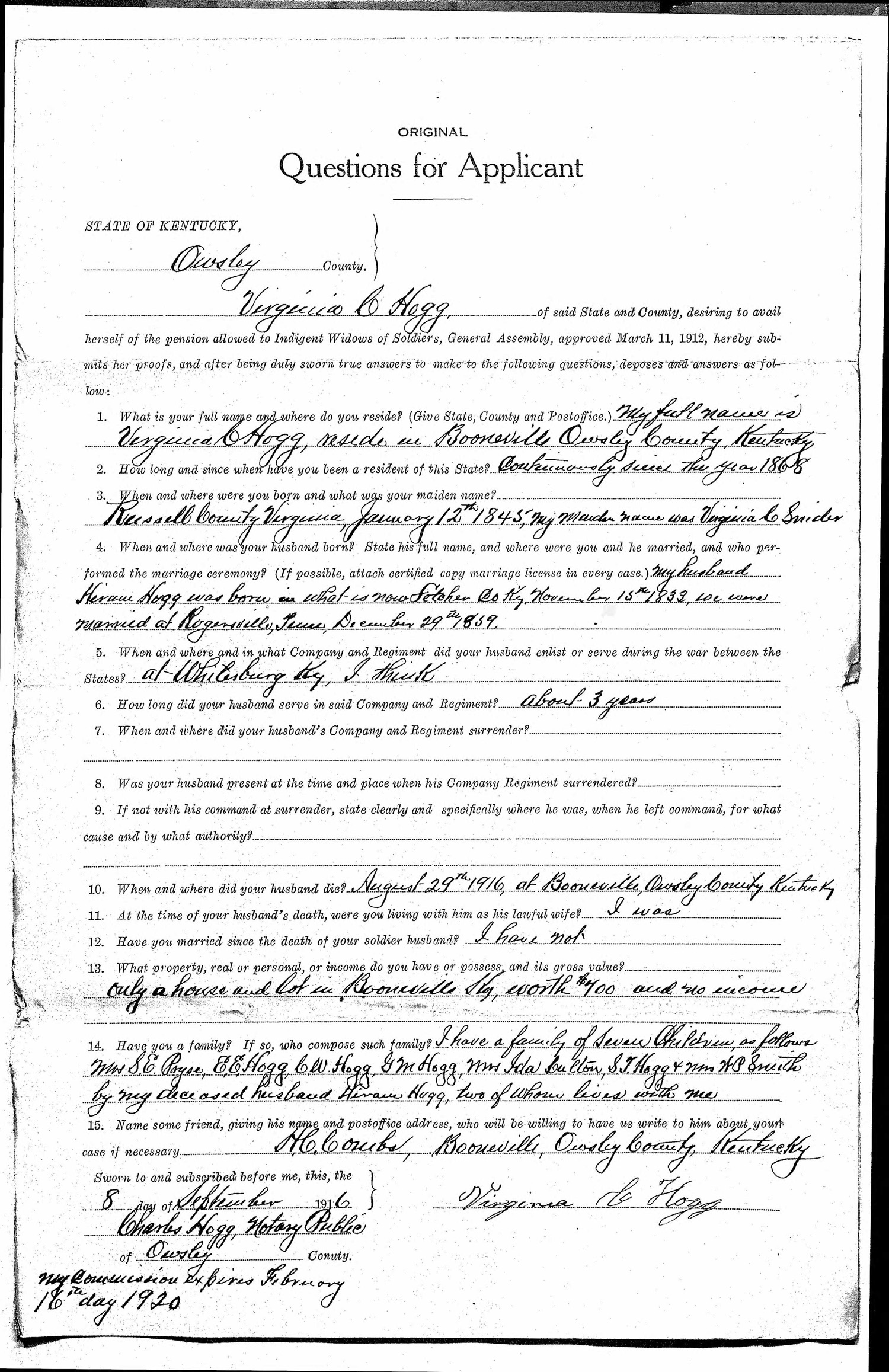 Confederate Widow Pension Application
