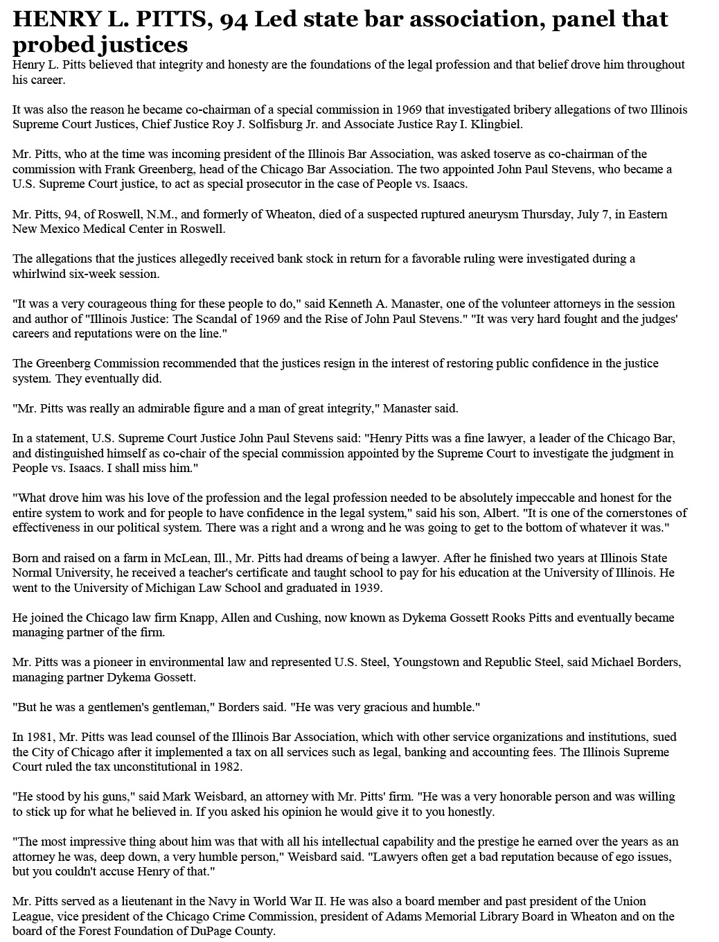 Henry L Pitts