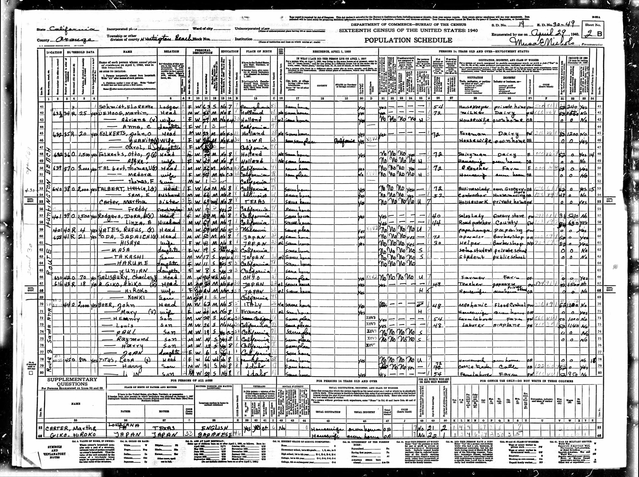 1940 US Census Talbert, Thomas
