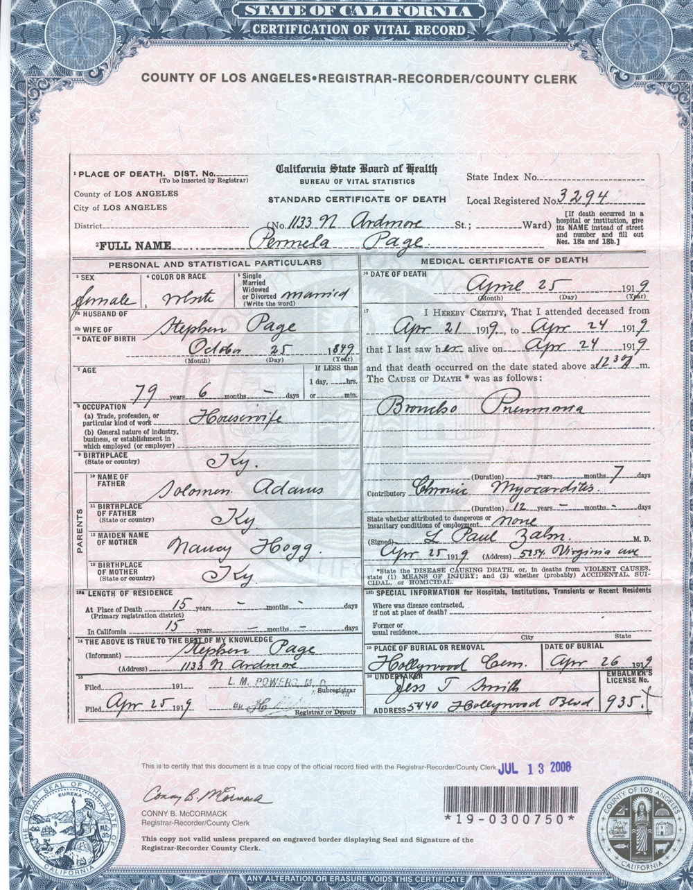 Death Certificate