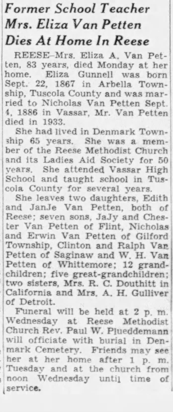 Eliza A Gunnell Van Petten