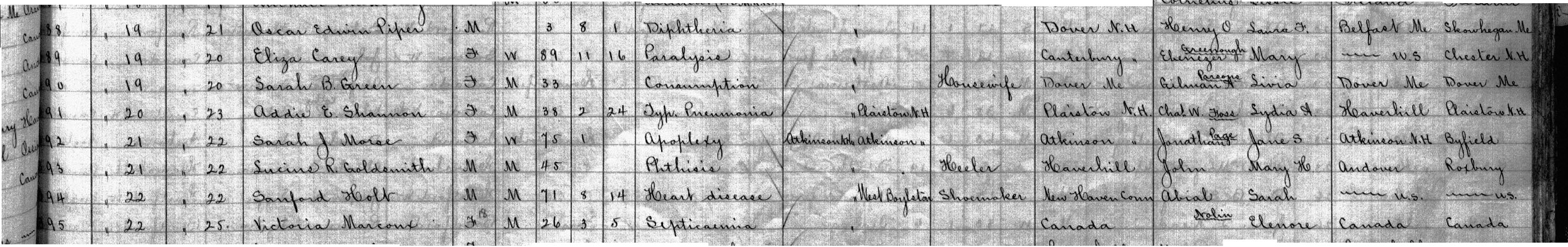 Sarah J Morse Death Record