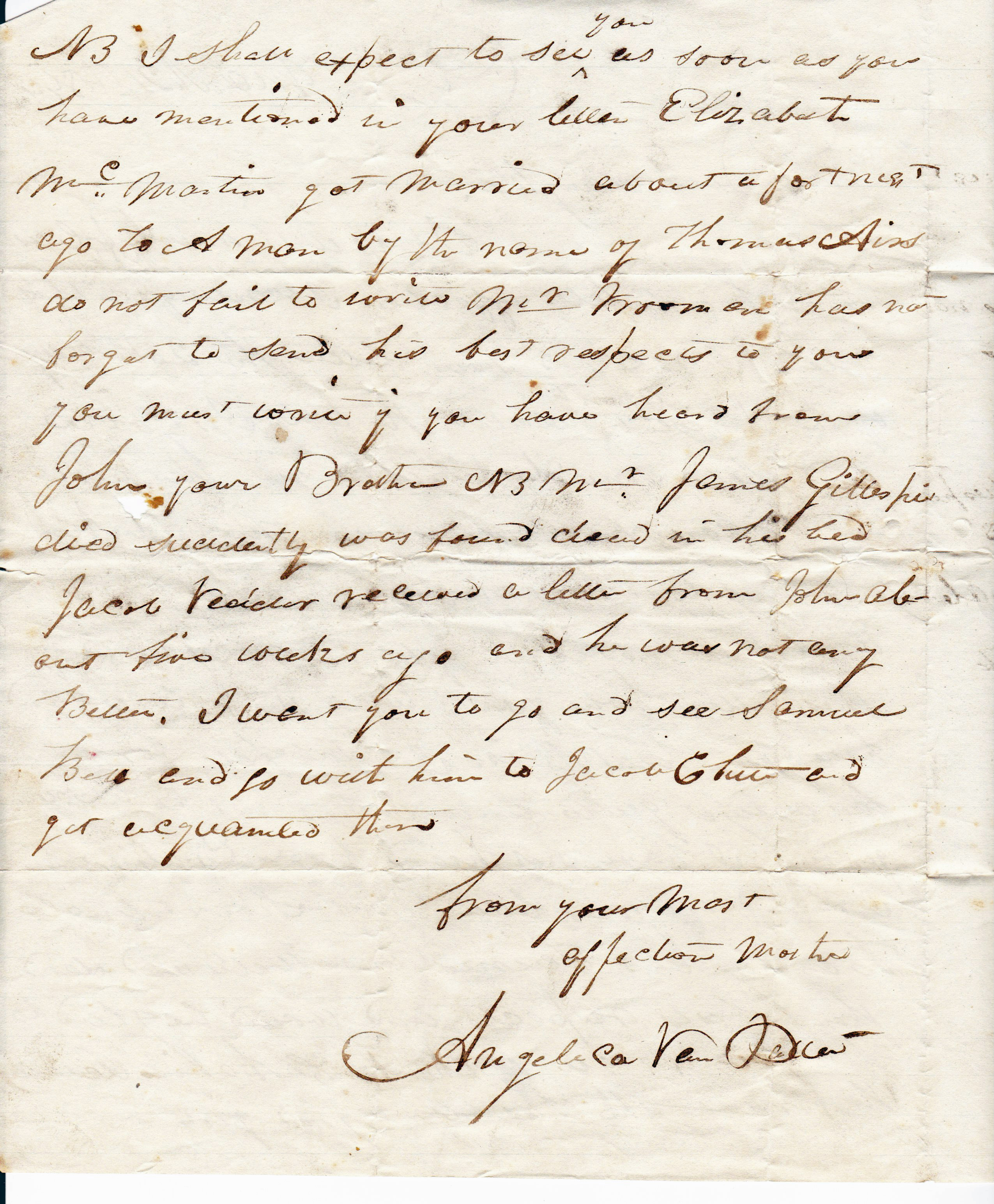 Letter from Angelica van Patten