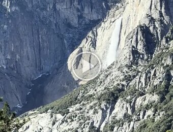 View from our room Upper Yosemite Falls Upper Yosemite Falls The usually dry creek feeding the Merced River near the village store Steller's Jay near Ahwahnee meadow Sunset Our welcome gift New carpeting for the lobby