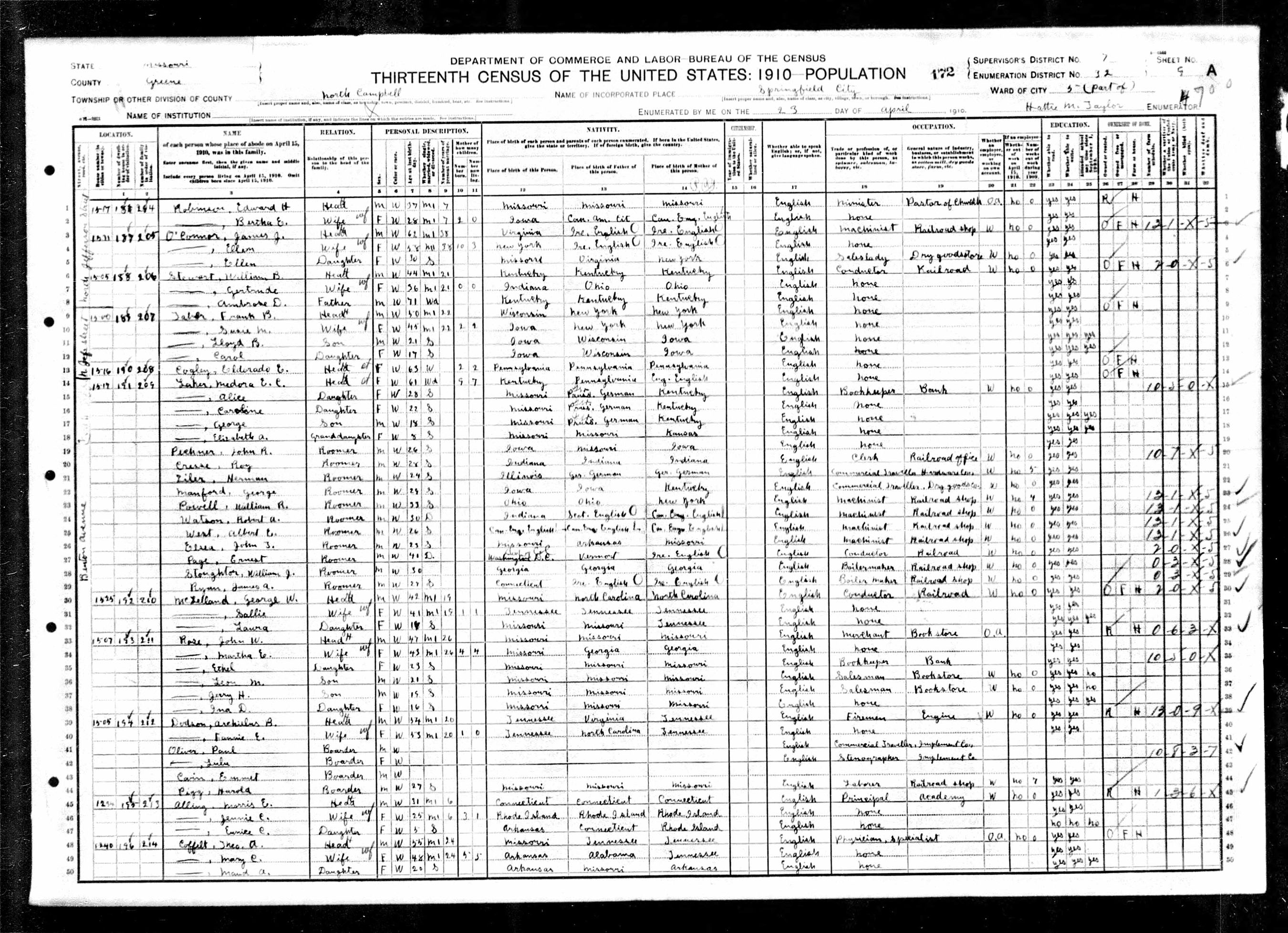 (Ernest Page is Roomer)